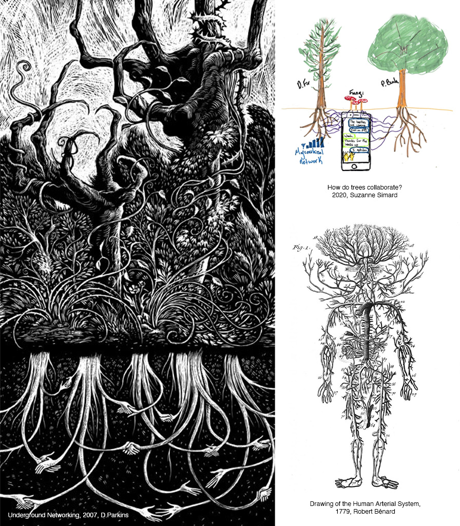 Rather than embedding sensors into plants, this work proposes a different kind of interface—one that values agency for plant life and drawing connections between circuits and trees' root system. From birch plywood that echoes Simard’s research on mother trees to the imagined flow of carbon through threads of mycelium, A Friendly Hand, though synthetic, breathes life through conceptual design, poetic built, and research through design.